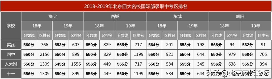 即使没有获得直升实验国际部的机会,其他第一梯队国际部也是不错的选择。小A一模西城区排名300,托福98,同时被十一和人大附国际部“死签”;小X一模海淀区排名800,托福成绩101被人大附“死签”;小Z一模海淀区排名1000,托福成绩104被十一“死签”。由此可以看出,若是托福成绩十分优秀,甚至可以弥补区排名的不足。